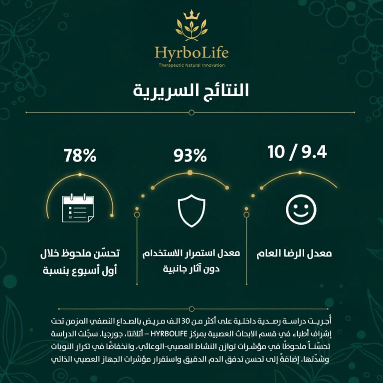 أُجريت دراسة رصدية داخلية على أكثر من 30 الف مريض بالصداع النصفي المزمن تحت إشراف أطباء في قسم الابحاث العصبية بمركز HyrboLife – أتلانتا، جورجيا. سجّلت الدراسة تحسّنًا ملحوظًا في مؤشرات توازن النشاط العصبي-الوعائي، وانخفاضًا في تكرار النوبات وشدّتها، إضافةً إلى تحسن تدفق الدم الدقيق واستقرار مؤشرات الجهاز العصبي الذاتي