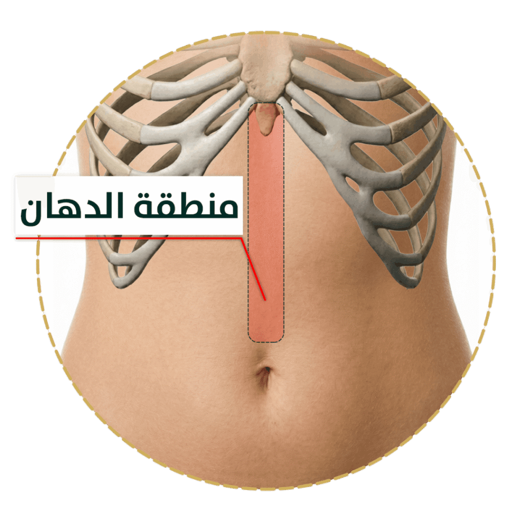 منطقة التطبيق: من أسفل عظمة القص وصولاً للسرة